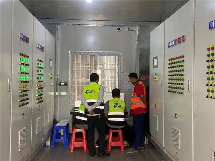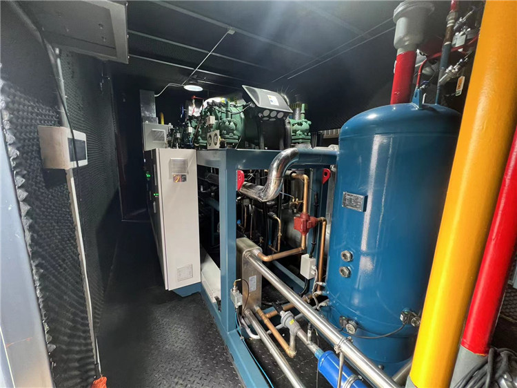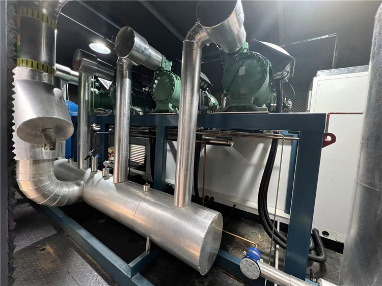 普冷南寧倉庫采用大森氟利昂(R507)直接膨脹供液制冷系統(tǒng),主機(jī)選用螺桿并聯(lián)機(jī)組,為冷凍、冷藏、低溫穿堂三個(gè)溫區(qū)提供冷源。制冷機(jī)房采用集裝箱式制冷站的形式,完美解決干倉改造中前期設(shè)計(jì)無制冷機(jī)房的痛點(diǎn)。