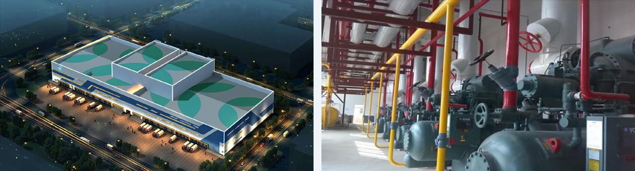1#2#加封閉式冷藏碼頭,總建筑面積14344㎡,總存儲容積165640m3,高低溫冷庫凈層高24米二間,為全自動(dòng)立體化冷庫,另凈高12米2間,其中設(shè)一間變溫庫。氨制冷系統(tǒng),末端吊頂式冷風(fēng)機(jī),自動(dòng)熱氨融霜加自然融霜,位于福建廈門,為中國第一座超過24米的立體冷庫,也是廈門首個(gè)集冷凍、冷藏、恒溫、常溫于一體的多溫層現(xiàn)代化冷庫。
