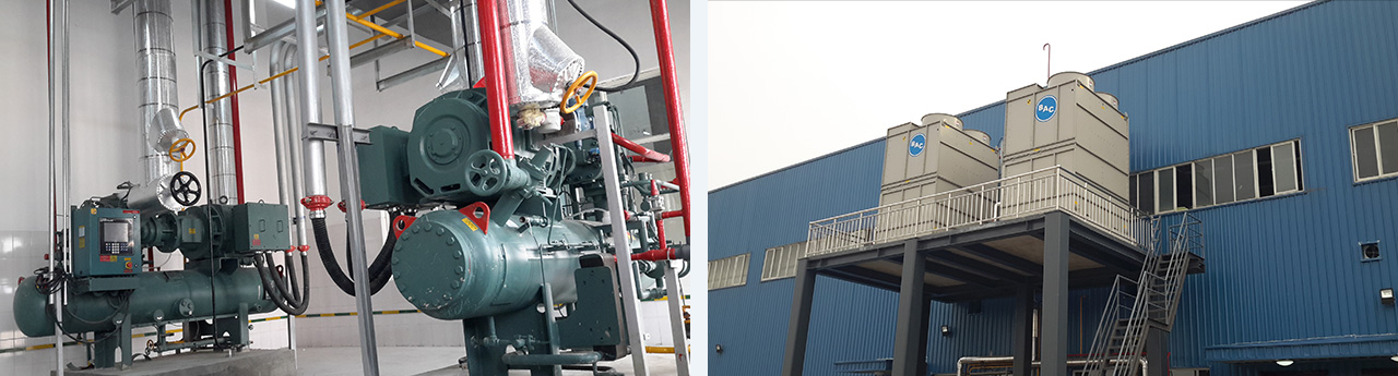 一座單層鋼結(jié)構(gòu)冷庫(kù)。本項(xiàng)目為固定貨架裝配式冷庫(kù),采用封閉式降溫穿堂(3±2°C)。1號(hào)、2號(hào)冷庫(kù)庫(kù)溫-18°C~-22°C,存儲(chǔ)6014噸。3號(hào)冷庫(kù)庫(kù)溫5°C,容量為229噸。降溫穿堂溫度為3±2°C。采用氨(R717)制冷系統(tǒng),末端吊頂式冷風(fēng)機(jī),手指令自動(dòng)熱氨融霜。