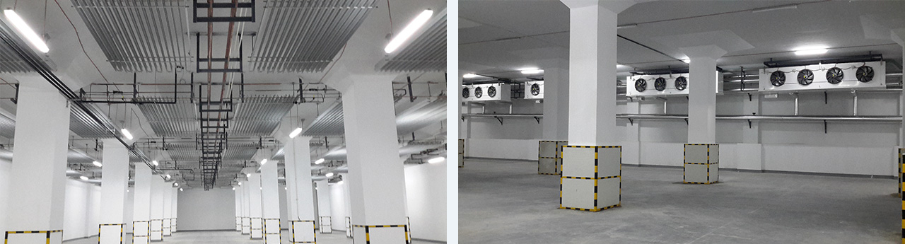 兩座六層土建冷庫(kù),冷庫(kù)面積90000㎡,庫(kù)容超10萬噸。含低溫庫(kù)、高溫庫(kù)。采用氟利昂(R507)制冷系統(tǒng),末端冷風(fēng)機(jī)及排管,鋁排管采用定期手動(dòng)掃霜,冷風(fēng)機(jī)采用水沖霜,自動(dòng)或手指令控制。業(yè)主單位南通農(nóng)副產(chǎn)品物流有限公司是由南通汽運(yùn)實(shí)業(yè)集團(tuán)有限公司、南通市供銷合作總社和中國(guó)農(nóng)發(fā)重點(diǎn)建設(shè)基金有限公司共同出資建設(shè)的一家綜合性農(nóng)產(chǎn)品批發(fā)市場(chǎng)。